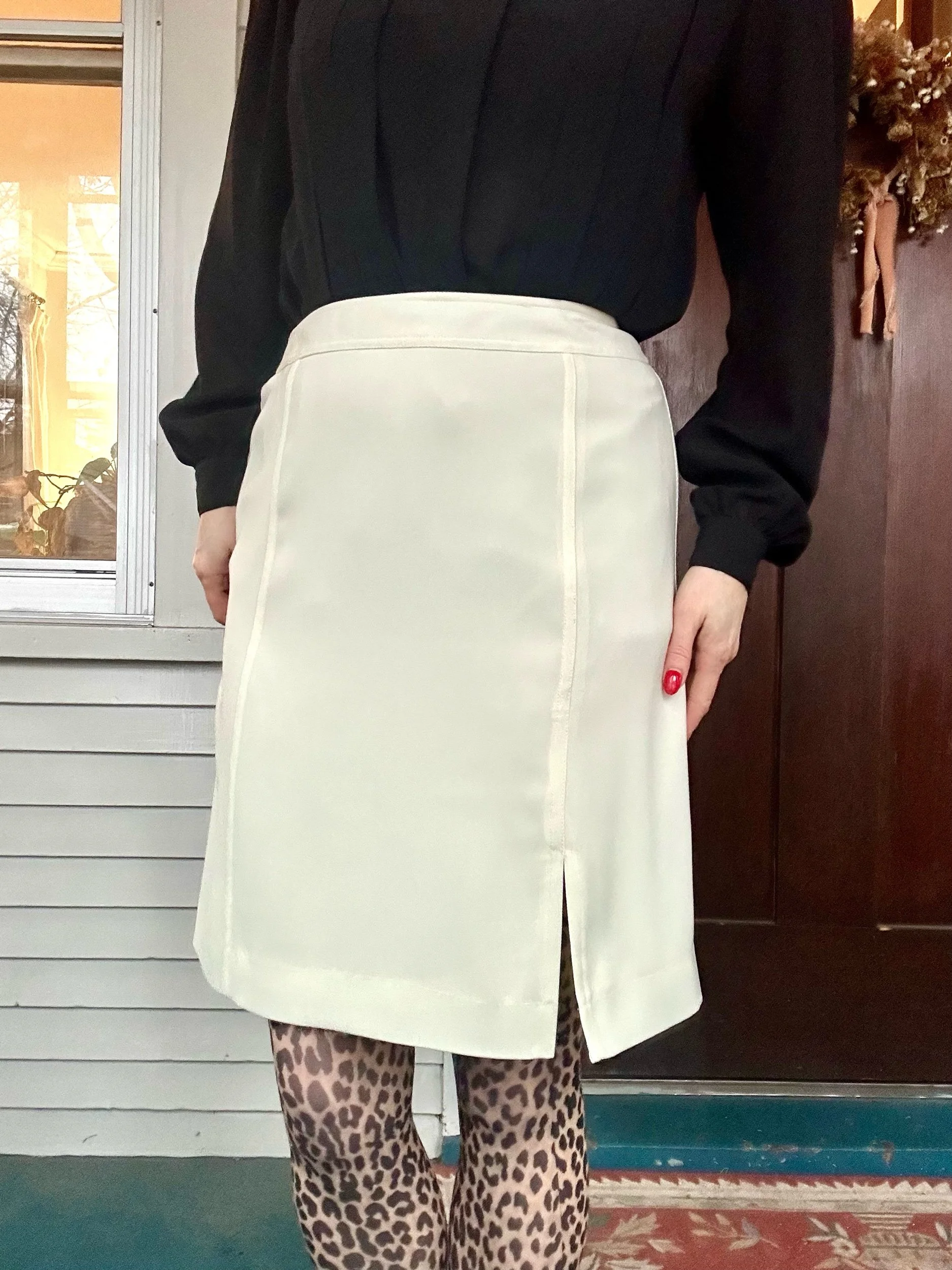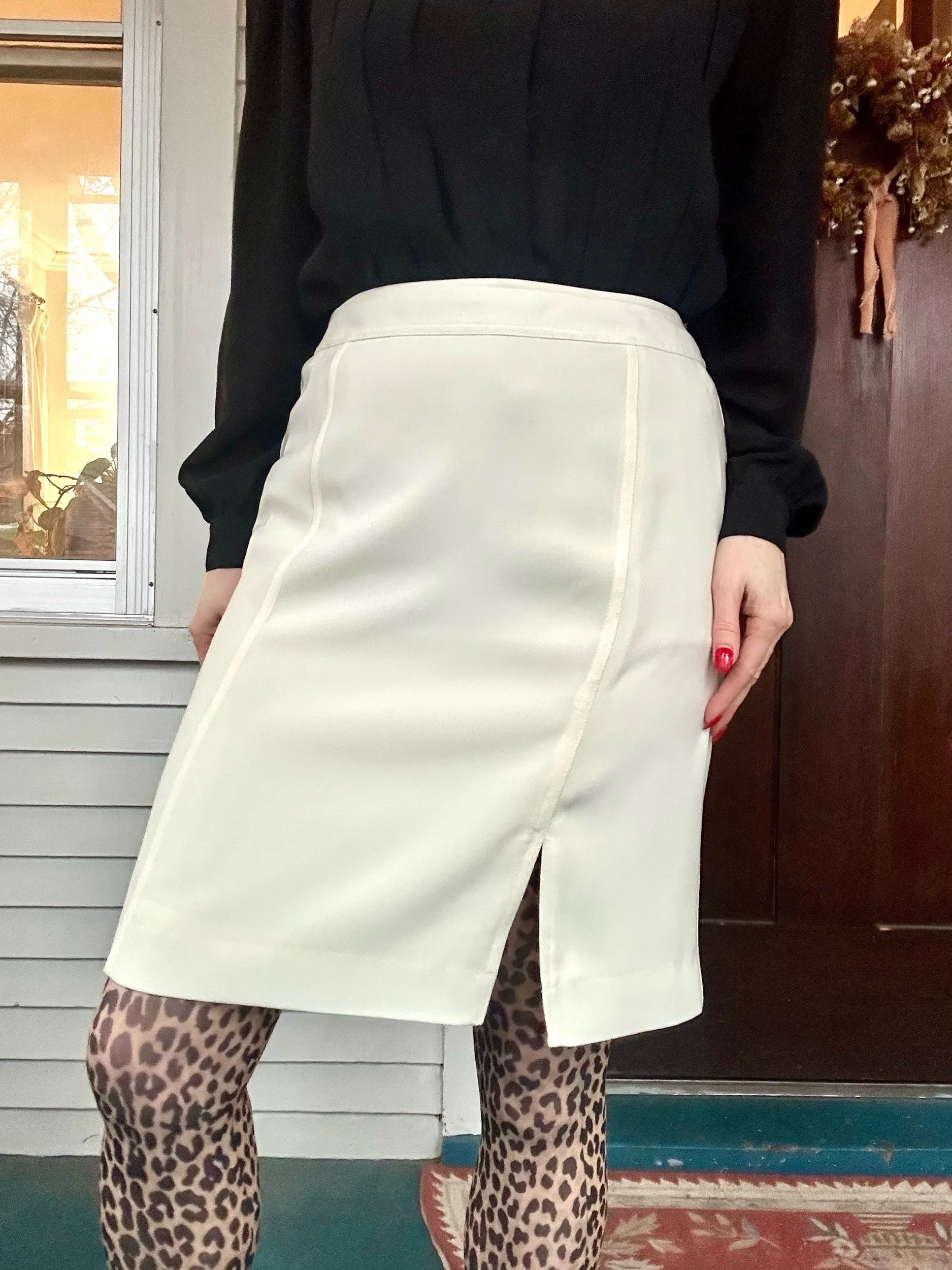 Vintage Spring 1998 Chanel Ivory Minimal Slit Knee Length Skirt FR 42 US 8